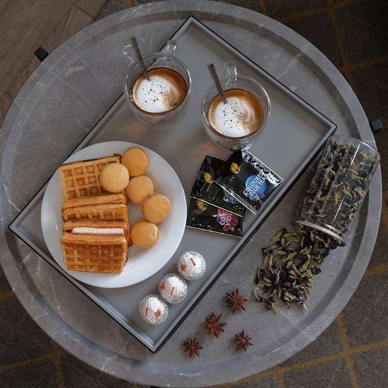Многофункциональность. Этот чайный поднос подходит для использования не только дома, но и в гостиницах, ресторанах или офисах, добавляя роскоши и удобства в вашу повседневную жизнь.