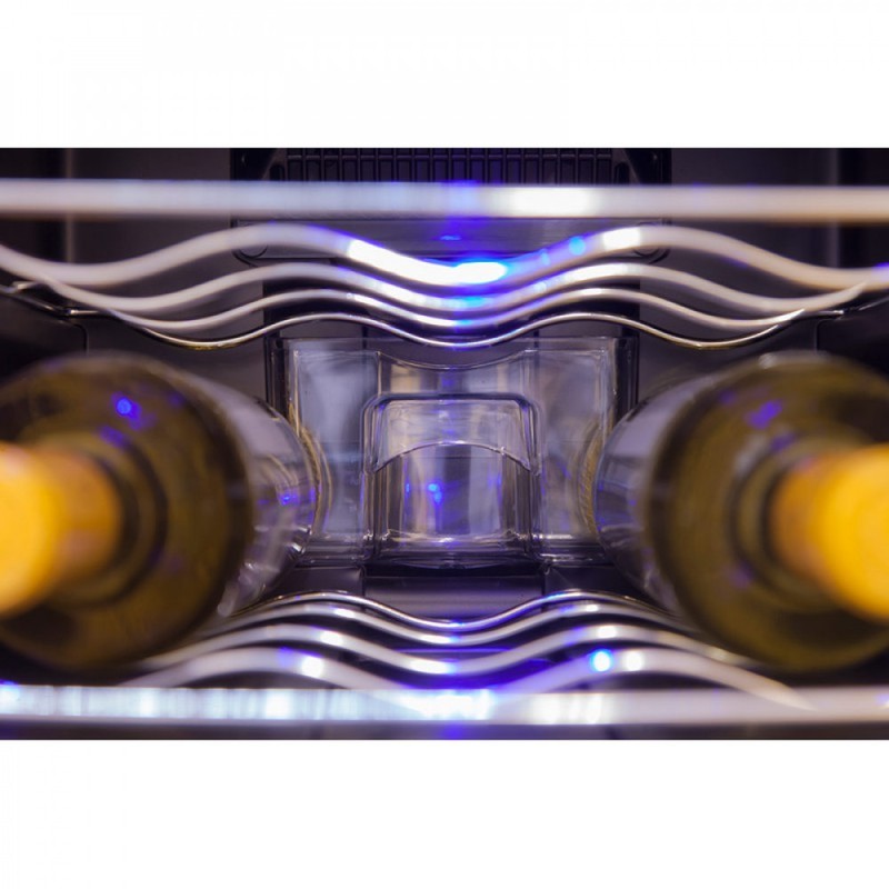 Температура в винном шкафу C12-TBSF настраивается в диапазоне от +8°C до +18˚С, что позволяет хранить в нём разные виды вин. Но при этом важно помнить, что термоэлектрические шкафы очень зависимы от температуры окружающей среды. Примерная разница между окружающей и фактической температурой в шкафу будет составлять не более 18˚С. Устанавливать данную модель желательно вдали от прямых солнечных лучей, нагревательных приборов, и ни в коем в случае не рекомендуется встраивать винный холодильник C12-TBSF1 в закрытую мебельную нишу.