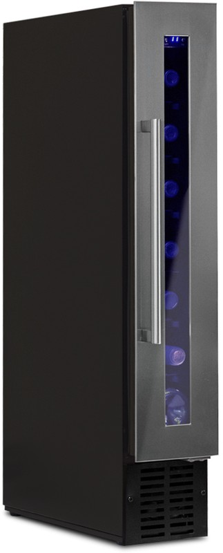 Лаконичный дизайн модели подойдет для любой современной кухни, бара или гостиной. Корпус винного шкафа выполнен из металла чёрного цвета, дверца обшита бесшовной нержавеющей сталью. Тройное защитное стекло защитит Вашу винную коллекцию от вредного воздействия солнечных лучей и поможет создать идеальный микроклимат винного погреба внутри шкафа. Удобная накладная ручка из нержавеющей стали легко снимается и устанавливается на дверцу. Цифровой индикатор температуры и внутреннее освещение – на светодиодах синего цвета.