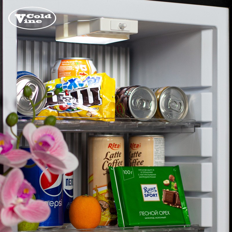 Компактная модель легко умещается на тумбочке рядом с кроватью. Наслаждайтесь любимыми напитками в ночное время суток, не вставая с постели. Приятное светодиодное освещение не режет глаза и позволит с легкостью сориентироваться по содержимому даже спросонья.