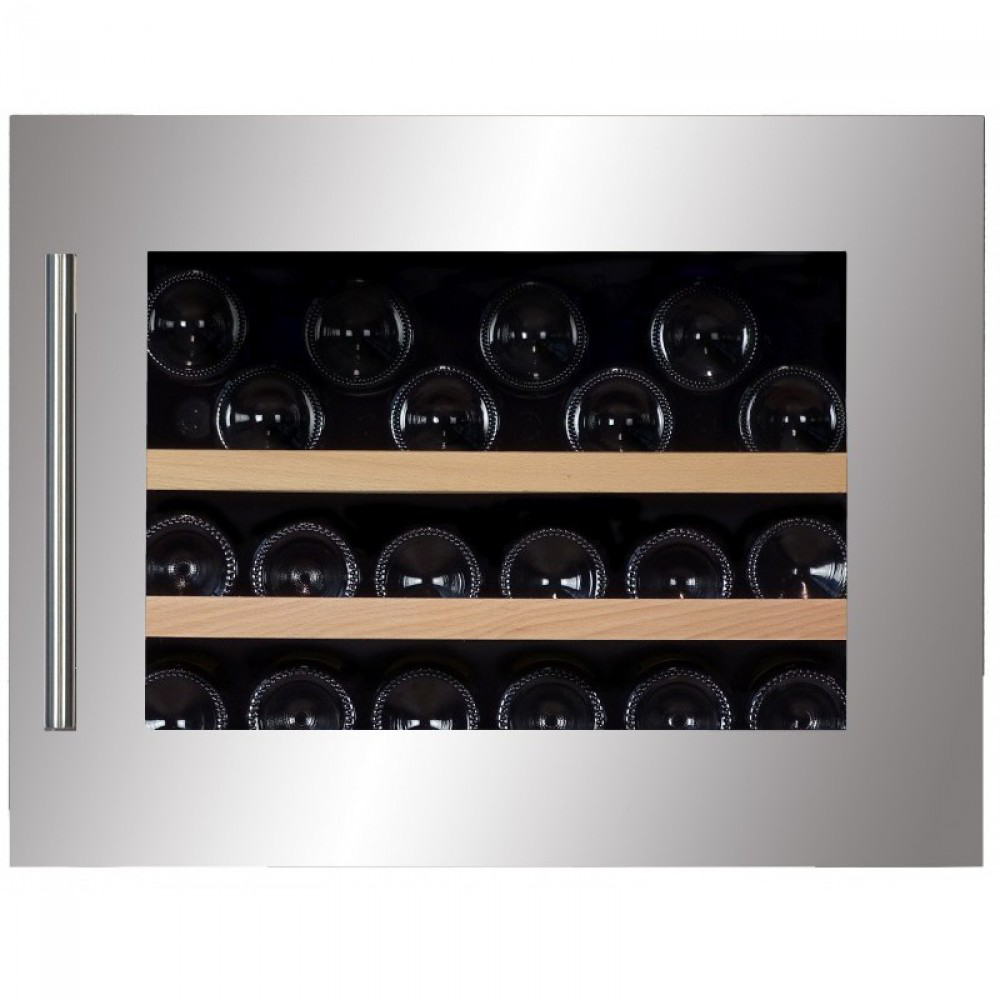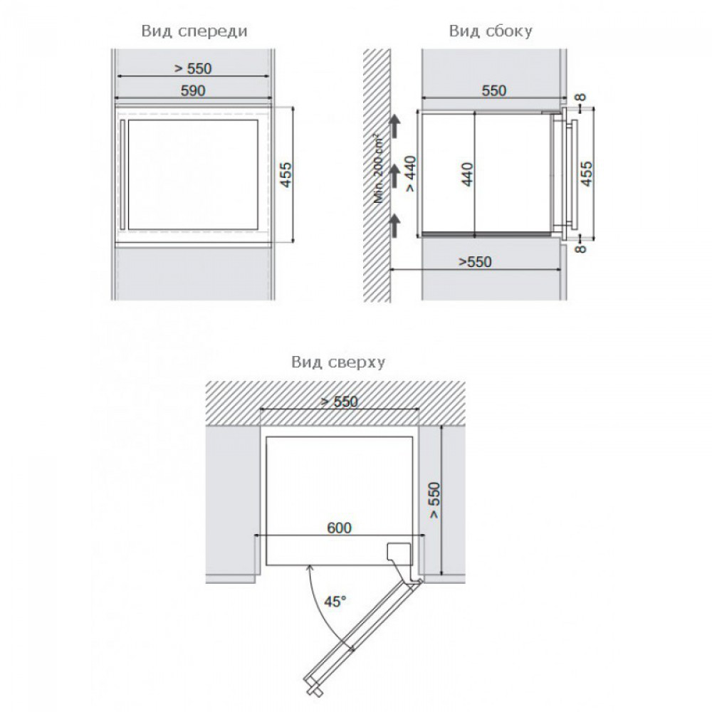 Винный встраиваемый шкаф Dunavox DAB-28.65SS Новинка!Модель DAB-28.65SS на базе малошумного компрессора имеет 1 зону охлаждения, вмещает в себя до 28 бутылок вина и создает оптимальные условия для хранения вина и подготовке к дегустации. Шкаф оснащен внутренним вентилятором для равномерного доступа холодного воздуха ко всем полкам шкафа. Комплектуется холодильник DAB-28.65SS тремя выдвижными деревянными полками, выполненными из древесины бука.Шкаф оснащен сенсорной панелью управления, с помощью которой пользователь выбирает необходимый температурный режим работы аппарата. В модель встроена функция звукового оповещения об открытой двери, для включения которой необходимо прикоснуться к кнопке питания, а отключается она в случае, когда дверь открыта более 60 секунд.В холодильнике Dunavox DAB-28.65SS встроена функция "Отдых", которая позволяет отключить дисплей, подсветку и звуковые оповещения, но при этом винный шкаф продолжит охлаждать вино. Такой режим действует 96 часов, по истечении которых автоматически отключается.В винном холодильнике Dunavox DAB-28.65SS предусмотрена возможность перевешивания двери на другую сторону, что дает дополнительное удобство при установке холодильника в подходящее по габаритам место.Корпус модели металлический с покрытием черного цвета, дверца выполнена из прозрачного двойного стеклопакета, защищенного от воздействия ультрафиолетовых лучей в рамке из полированной нержавющей стали. Ручка двери удобная, накладная, выполнена из нержавеющей стали. Цифровой индикатор температуры и внутреннее освещение на светодиодах синего цвета.Винный шкаф Dunavox DAB-28.65SS предназначен для встраивания в нишу. Для обеспечения отвода горячего воздуха необходимо предусмотреть сквозную вентиляционную нишу площадью не менее 200 см² от цоколя до верхней части мебельного модуля (см. рисунок).Рекомендуется устанавливать винный шкаф Dunavox DAB-28.65SS вдали от прямых солнечных лучей и источников тепла (духовки, нагревателя, батареи и т.д.). Прямой солнечный свет может плохо повлиять на корпус, а источники тепла могут увеличить энергопотребление. Не допускается установка аппарата рядом с плитой или прибором, который может нагревать воздух в пространстве 1-5 см от его корпуса (например, рядом схолодильником, у которого теплообменная стенка граничит с аппаратом). Не рекомендуется устанавливать прибор на полы с подогревом без специальной термоизолирующей подложки.Отличительные особенностиОдна зона охлажденияАвтоматическая система разморозки.Три деревянные полки без лакового покрытия.Компрессор с минимальным уровнем шума 39 дБ.Увеличенная до 3 лет гарантия.Функциональные особенностиДверца шкафа выполнена из двойного стеклопакета с защитой от УФ лучей в рамке из нержавеющей стали.Регулируемый температурный режим в диапазоне от +5°C до +22°C позволяет хранить белые, красные и игристые вина.Внутренний вентилятор способствует равномерному распределению температуры по всему объему шкафа.Функция звукового оповещения об открытой двери.Функция "Отдых".Дверь перевешивается.Удобная сенсорная панель управления обеспечивает простую и быструю установку необходимой температуры.Светодиодная подсветка.