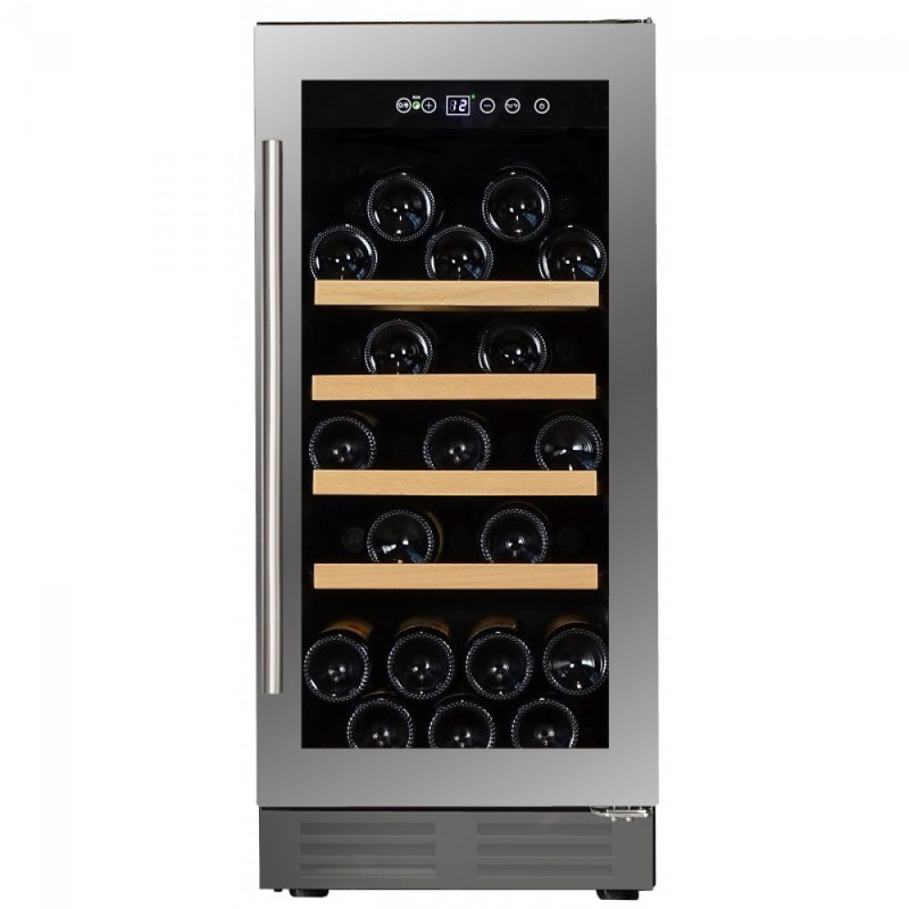 Новейшая эксклюзивная модель винного холодильника Dunavox DAU-32.81SSМонотемпературный винный шкаф DAU-32.81SS оснащен системой циркуляции воздуха для его равномерного доступа ко всем полкам шкафа и угольным фильтром. Комплектуется холодильник DAU-32.81SS пятью деревянными полками. В нем предусмотрена возможность перевешивания двери на другую сторону, что дает дополнительное удобство при установке холодильника в подходящее по габаритам место.Шкаф оснащен электронной панелью управления, с помощью которой пользователь выбирает необходимый температурный режим работы аппарата. В модель DAU-32.81SS встроены такие функции как: функция звукового оповещения об открытой двери, энергосберегающая функция "Отдых", позволяющая при работающем холодильнике (работающем охлаждении вина) на время отключить дисплей, подсветку и звуковые оповещения и функция увеличения влажности воздуха для создания оптимальных условий для хранения и дозревания вина.Элегантный внешний вид винного холодильника DAU-32.81SS подойдет как к интерьеру современной кухни, так и обстановке небольшого ресторана. Корпус из металла с покрытием черного цвета, дверца выполнена из тонированного стекла, защищенного от воздействия ультрафиолетовых лучей. Ручка шкафа удобная, накладная, выполнена из нержавеющей стали, рама двери - стальная. Цифровой индикатор температуры и внутреннее освещение - на светодиодах синего цвета.Винный шкаф Dunavox DAU-32.81SS легко встраивается под столешницу или может устанавливаться отдельно. Охлаждение компрессора происходит через вентиляционные решетки внизу шкафа, что позволяет встраивать винный холодильник без зазоров.Рекомендуется устанавливать винный шкаф Dunavox DAU-32.81SS вдали от прямых солнечных лучей и источников тепла (духовки, нагревателя, батареи и т.д.). Прямой солнечный свет может плохо повлиять на корпус, а источники тепла могут увеличить энергопотребление. Не допускается установка аппарата рядом с плитой или прибором, который может нагревать воздух в пространстве 1-5 см от его корпуса (например, рядом схолодильником, у которого теплообменная стенка граничит с аппаратом). Не рекомендуется устанавливать прибор на полы с подогревом без специальной термоизолирующей подложки.Отличительные особенностиОдна зона охлаждения.Автоматическая система разморозки.Угольный фильтр в базовой комплектации (рекомендуется менять 1 раз в год).Минимальный уровень энергопотребления.Пять деревянных полок без лакового покрытия.Увеличенная до 3 лет гарантия.Функциональные особенностиДверца шкафа выполнена из тонированного стеклопакета с защитой от УФ лучей.Регулируемый температурный режим в диапазоне от +5°C до +22°C подходит для хранения большинства сортов вин.Равномерное поддержание температуры в по всему объему шкафа осуществляется внутренним вентилятором.Функция звукового оповещения об открытой двери.Функция "Отдых".Функция увеличения влажности воздуха.Дверь перевешивается.Угольный фильтр служит для улучшения воздухообмена в шкафу, очищения от посторонних запахов и устранения лишней влаги.Удобная панель управления обеспечивает простую и быструю установку необходимой температуры.Светодиодная подсветка (в каждой зоне).**Предельные значения температуры в помещенииИзделие предназначено для работы в температурных условиях, указанных в таблице с температу
