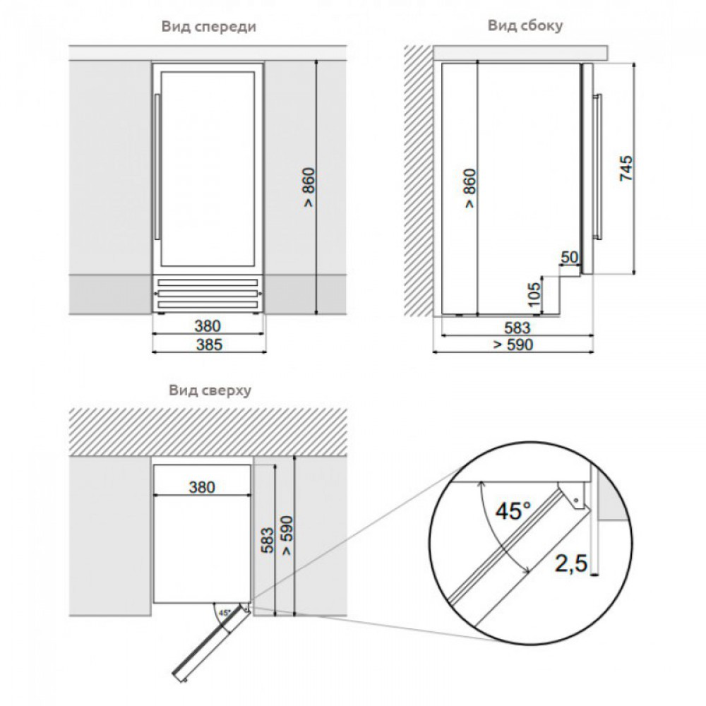 Минимальный размер ниши для встраивания (ВxШxГ), мм:
