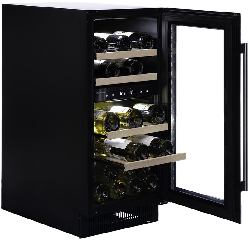 Компрессорный винный шкаф Dunavox DAUF-32.78DB обладает средней вместимостью и способен разместить в себе до 32 бутылок. Располагаются они на выдвижных полках из массива бука.