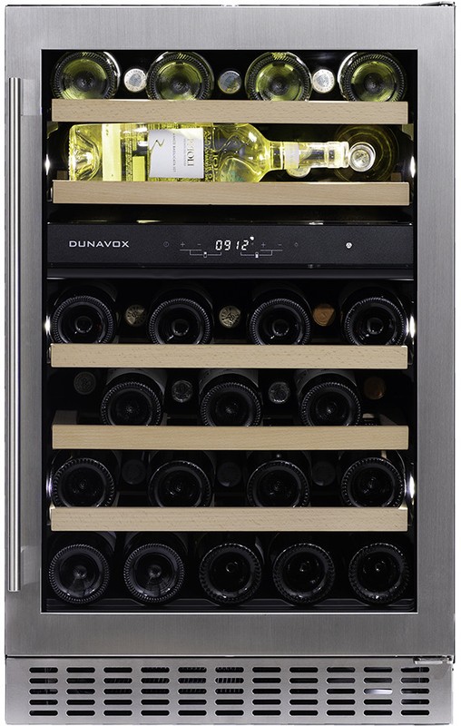 Встроенная система вентиляции создаёт необходимую циркуляцию воздуха для правильной работы винного холодильника. Компрессорный винный шкаф Dunavox DAUF-38.100DSS обладает большой вместимостью и способен разместить в себе до 38 бутылок. Располагаются они на выдвижных полках из массива бука.