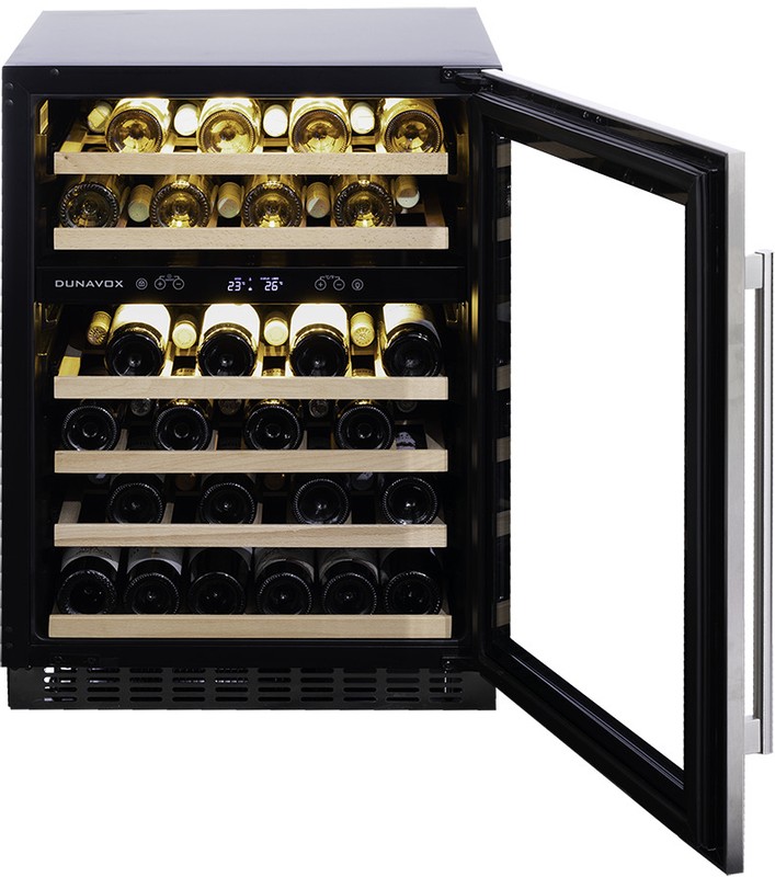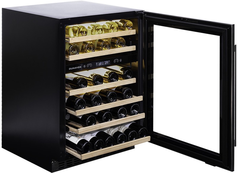Компрессорный винный шкаф Dunavox DAUF-46.145DSS обладает средней вместимостью и способен разместить в себе до 46 бутылок. Располагаются они на выдвижных полках из массива бука.