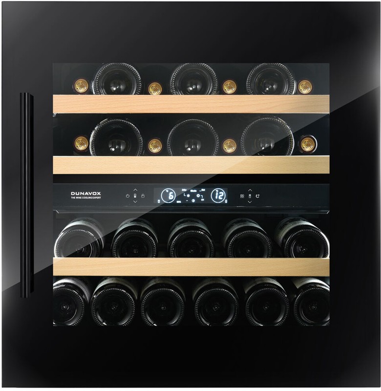 Изысканная модель Dunavox DVS-25.65DB вместимостью 25 бутылок с ЖК-экраном. Встраивается в колонну, полноценно вливаясь в кухонный гарнитур.