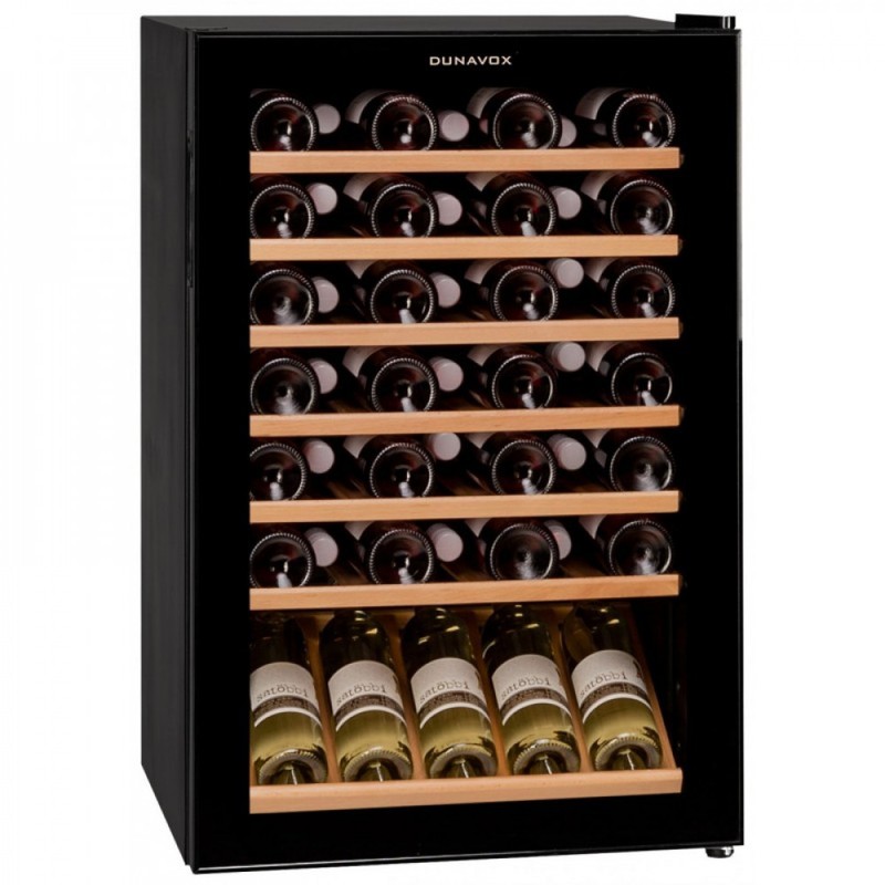 DX-48.130KF самый доступный винный шкаф в пересчете на стоимость хранения одной бутылки. Модель укомплектована семью полками из натурального дерева (включая одну презентационую) и одной металлической демонстрационной решеткой для вертикальной установки бутылок. Шкаф имеет одну зону охлаждения. Индикатор температуры и внутренняя подсветка выполнены на светодиодах приятного синего цвета.