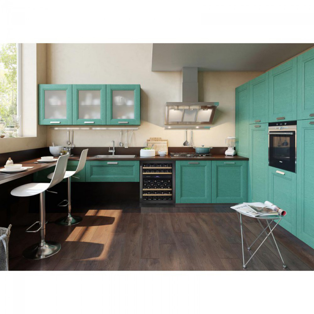 Высота винного шкафа может варьироваться от 820 до 890 мм за счёт выкручивающихся ножек, при этом съемная вентиляционная решетка внизу шкафа может раздвигаться по высоте, обеспечивая презентабельный внешний вид конструкции.