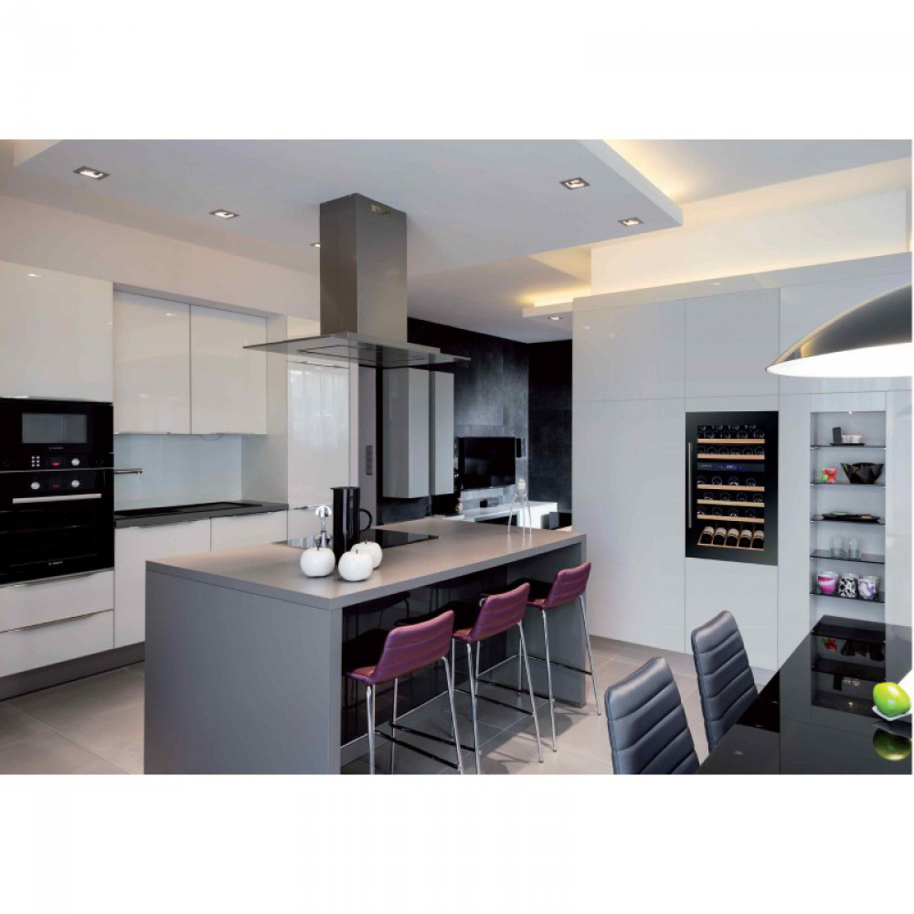 Регулируемый температурный режим каждой зоны шкафа в диапазоне от +5°C до +22°C позволяет хранить белые, красные и игристые вина.