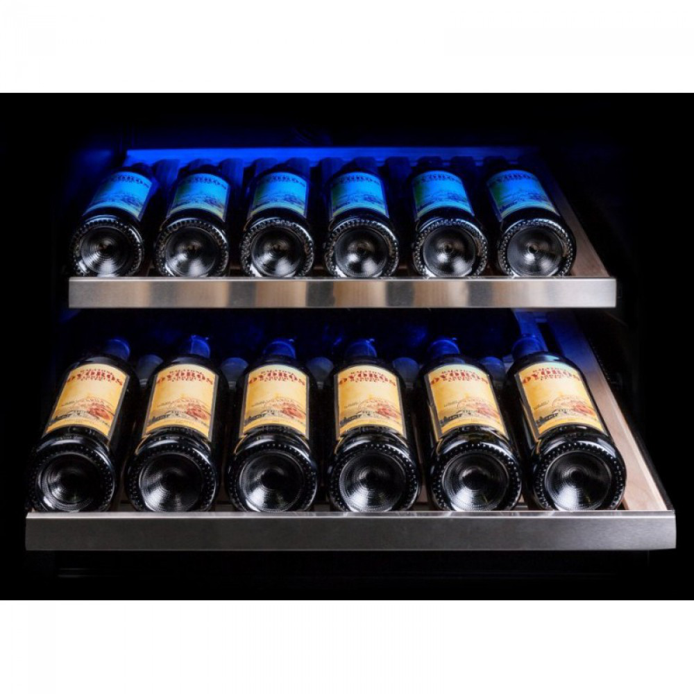Регулируемый температурный режим каждой зоны шкафы в диапазоне от +5°C до +22°C подходит для хранения большинства сортов вин.