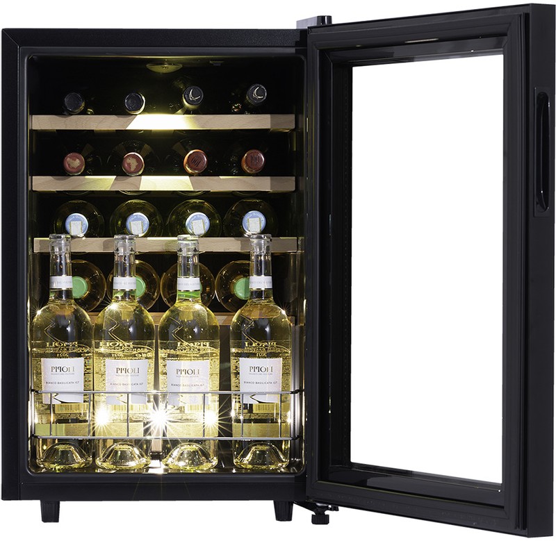 Компрессорный винный шкаф Dunavox DXFH-20.62 Инженеры компании Dunavox разработали новую модель отдельностоящего винного шкафа DXFH-20.62. Модель идеально вписывается в любой подходящий для Вас интерьер гостиной кухни, бара или кабинета. Двойное стекло с защитой от прямых УФ-лучей поддерживает качественные условия хранения вина. Компрессорный винный шкаф Dunavox DXFH-20.62 обладает средней вместимостью и способен разместить в себе до 20 бутылок. Располагаются они на выдвижных полках из массива бука. Внутреннее пространство шкафа имеет одну температурную зону с возможностью настраивать её в диапазоне от +5 °C до +18°C. Электронный термостат помогает стабильно поддерживать заданную Вами температуру. Холодильник поддерживает влажность в диапазоне 60-80%, как в настоящем винном погребе. Лаконичный дизайн шкафа придаёт интерьеру современный вид. В этой модели использовано освещение синего цвета, которое обеспечивает равномерную подсветку всех полок. (Освещение плавно включается при открывании дверцы, а через пару секунд после закрытия плавно гаснет.) Удобное и понятное сенсорное управление, исключает вероятность случайного нажатия. Винный шкаф DXFH-20.62 – современное решение в вопросе хранения вин. Отличительные особенности Элегантный дизайн Имеет одну температурную зону Затемненное стекло с УФ-фильтром Светодиодное освещение Плавное включение и выключение освещения Класс энергоэффективности G Сенсорное управление Dunavox оставляет за собой право изменять параметры без предварительного уведомления.