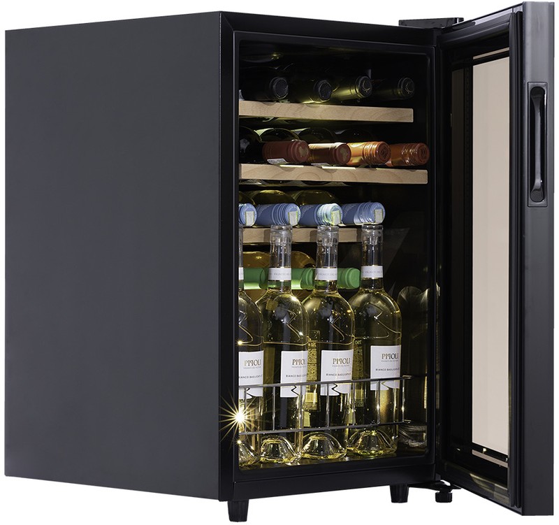Холодильник поддерживает влажность в диапазоне 60-80%, как в настоящем винном погребе.