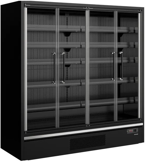 1955x740x2040 мм, 0.8 кВт, 220В, -1/+5С, объем 2165 / 943 л, с встр. агр., R290, вентилируемая (динамический холод), 5 полок, размеры полок 938x400 мм, 4 дверцы, с LED-подсветкой