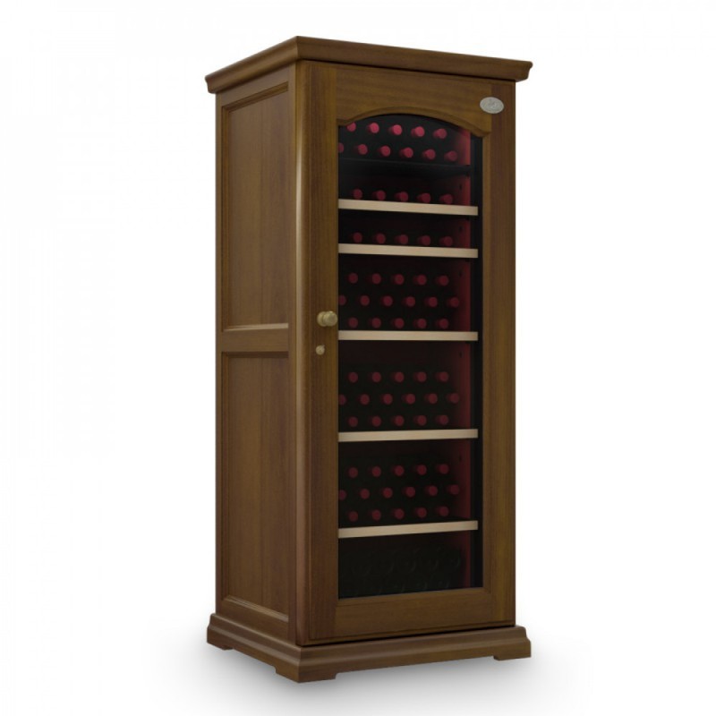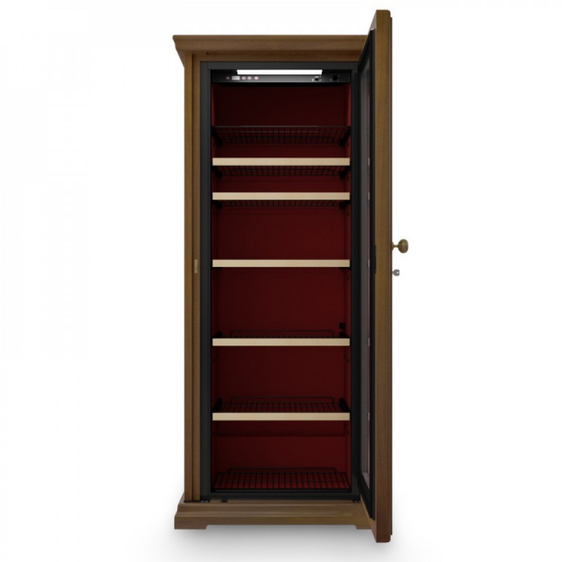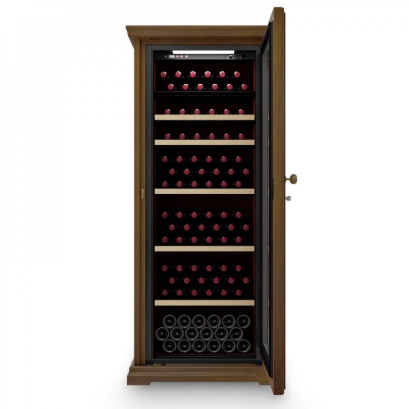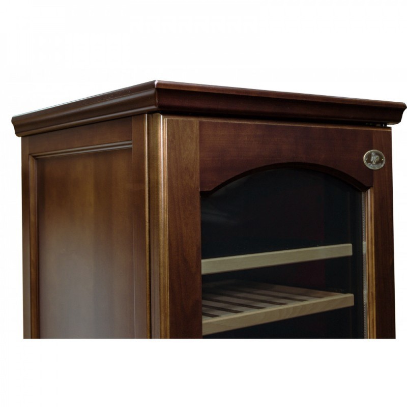 Корпус холодильника CEX 401 NU металлический, внешняя отделка винного шкафа выполнена из древесины Risto Line в четырех цветовых решениях. Дверца выполнена из двойного тонированного стеклопакета с защитой от уф лучей, имеет встроенный замок и удобную ручку в классическом стиле.