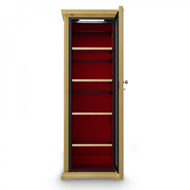 Корпус модели IP Industrie CEXK 501-6 LRU металлический, внешняя отделка винного шкафа выполнена из древесины Risto Line в четырех цветовых решениях. Дверца - из двойного стеклопакета с защитой от уф лучей, имеет встроенный замок и удобную ручку в классическом стиле.