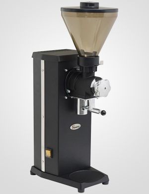 220х320х700 мм, 17,7 кг, 0,60 кВт, профессиональная кофемолка для магазинов. Корпус из нержавеющей стали и алюминия - цвет чёрный. Для любых вариантов кофе от очень тонкого помола до грубого. Бункер для зерен 1 кг. Жернова с горизонтальной осью. Эксклюзивные диски (жернова) Santos 63,5 мм, собственного производства. Средняя производительность 14 кг/ч. С держателем пакета, который выдерживает вес от 250 г до 1 кг - максимальная высота пакета 280 мм. Скорость 1500 об/мин. Гарантия на мотор 5 лет. Асинхронный двигатель с термоконтролем. Уровень шума 74 dB.