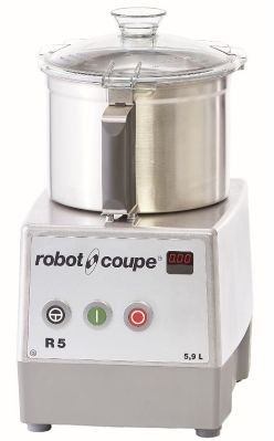 280х365х510 мм, Таймер, 2 скорости 1 500 и 3 000 об/мин. R5G (альтернативное название R5-2V) измельчает, приготавливает тонкие фарши, эмульсии, взбитые сливки, размельчает орехи и замешивает тесто, Трёхфазный 400В/50/3. Мощность 1500 Вт. 3,4 А - Штепсельная вилка не включена в комплект. Чаша из нержавеющей стали с ручкой объёмом 5,9 л, поставляется с ножом низкой посадки с 2 гладкими лезвиями.
