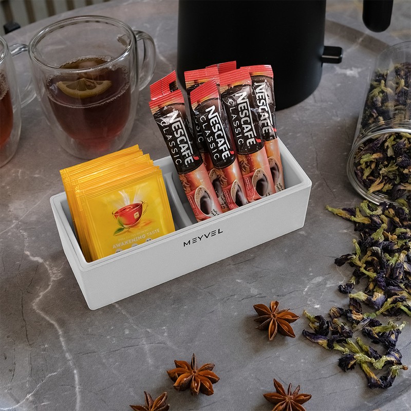 Организация пространства. Менажница помогает держать все необходимые для чаепития предметы в одном месте, предотвращая беспорядок на столе или в шкафу.Удобство использования. Модель A-001 (White) разделена на два отсека, которые помогают сделать чаепитие более организованным и удобным. Вы всегда будете знать, где находится чай, сахар, ложки и другие необходимые принадлежности.