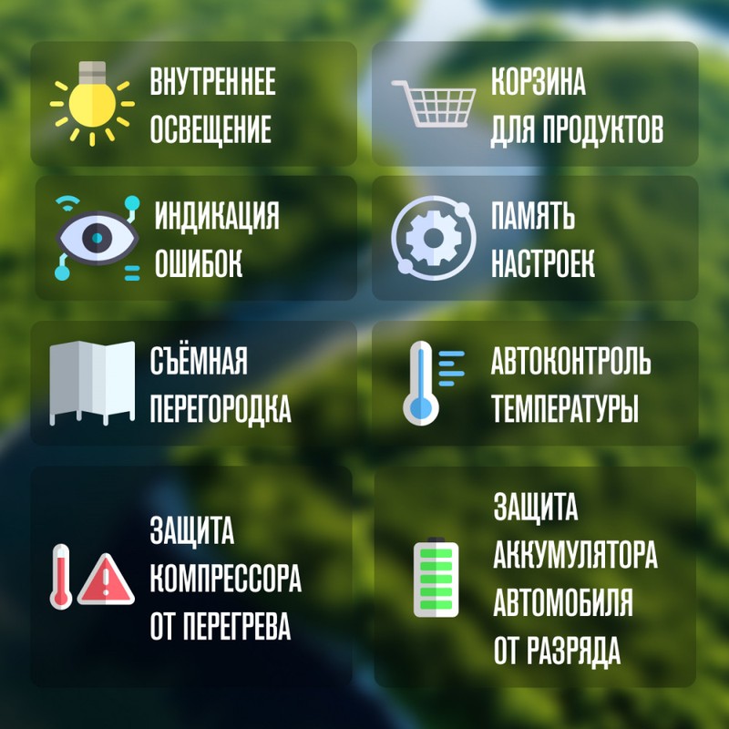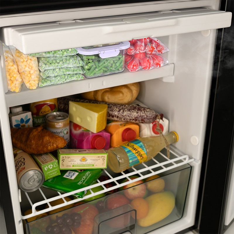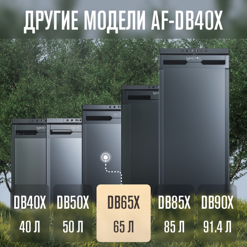 Одной из популярных моделей является встраиваемый автохолодильник AF-DB65X, предназначенный для монтажа в автомобилях различных типов, включая микроавтобусы, грузовики, яхты и автодома. Объем холодильника составляет 65 л, а питание может осуществляться от сети с напряжением 12 или 24 В. Внутри устройства две камеры, одна из которых предназначена для охлаждения, а другая - для замораживания продуктов до температуры -20°C.
