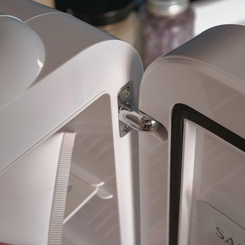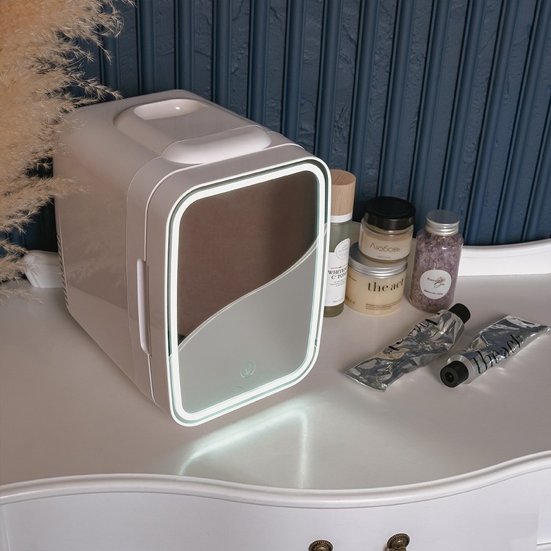 Внутренний объем бьюти-холодильника 4 л, чего вполне достаточно для хранения разнообразных уходовых продуктов. Его легко переносить и брать с собой в путешествия, так как вес без упаковки составляет всего 2 кг.