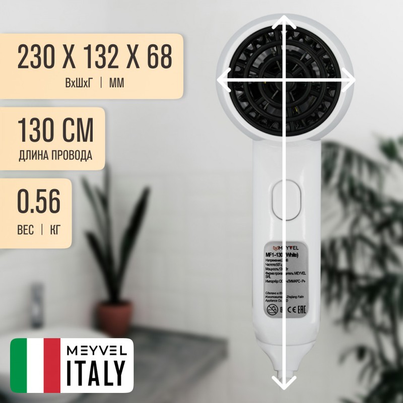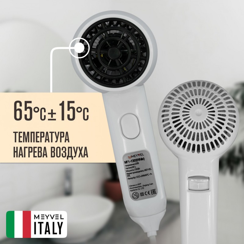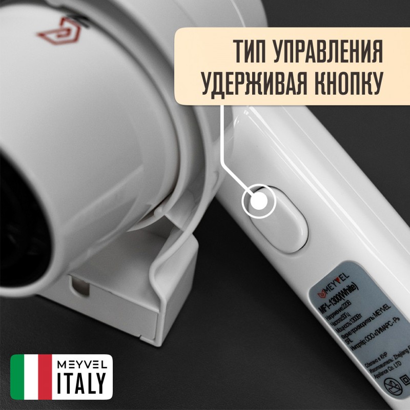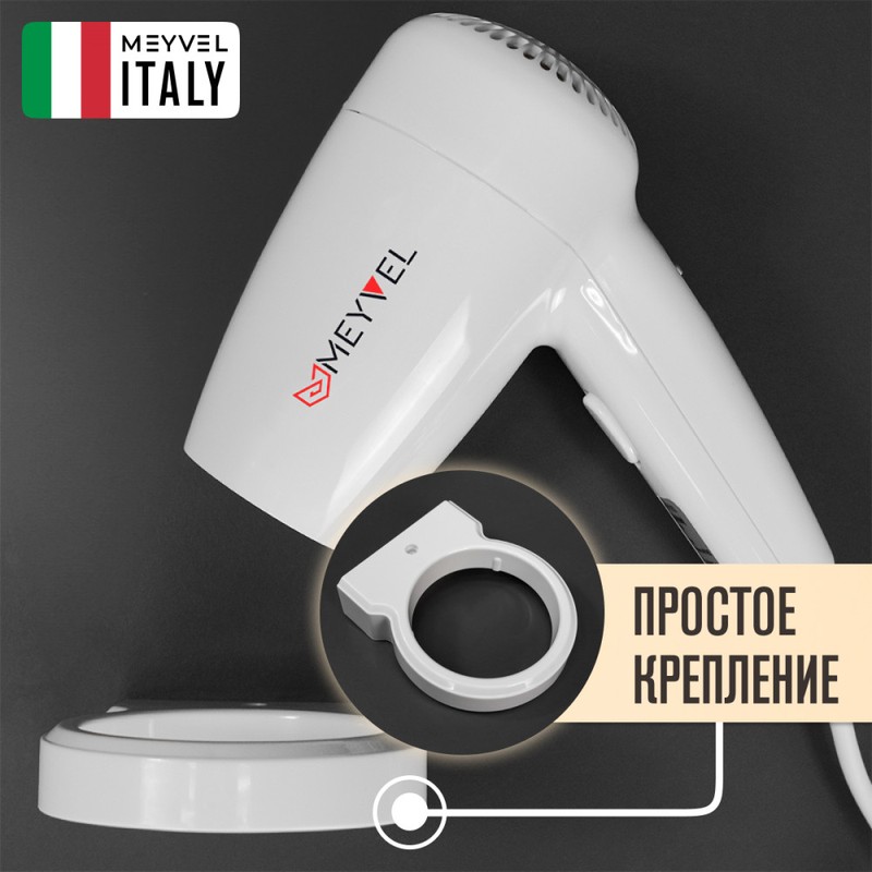 Настенный фен для волос Meyvel MF1-1300 (White) обеспечит комфортную и быструю сушку волос. Фен имеет настенную установку, что делает его идеальным вариантом для использования в гостиничном бизнесе, фитнес-центрах, офисах, либо в салонах красоты. Так же он подойдёт для использования в частных домах или квартирах. Благодаря небольшим габаритам, подобрать подходящее место установки не составит сложностей. Лёгкий вес устройства гарантирует удобство во время использования. Корпус сделан из ABS-пластика высокого качества.