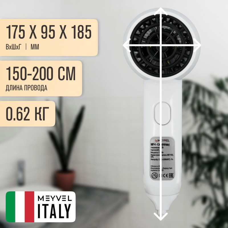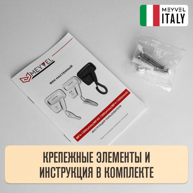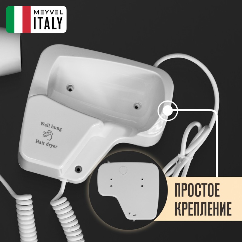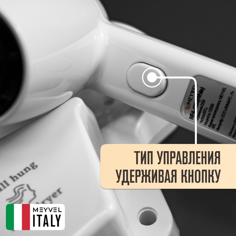 Настенный фен для волос Meyvel MF4-1300 (White) обеспечит комфортную и быструю сушку волос. Фен имеет настенную установку, что делает его идеальным вариантом для использования в гостиничном бизнесе, фитнес-центрах, офисах, либо в салонах красоты. Так же он подойдёт для использования в частных домах или квартирах. Благодаря небольшим габаритам, подобрать подходящее место установки не составит сложностей. Лёгкий вес устройства гарантирует удобство во время использования. Корпус сделан из пластика высокого качества.