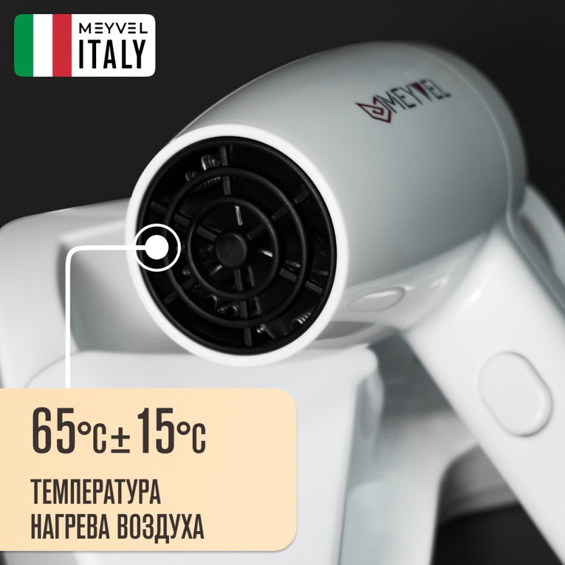 Данная модель имеет встроенную защиту от перегрева, для защиты двигателя от поломки, в случае продолжительного использования. Фен имеет мощность 1300 Вт, температуру нагрева воздуха 65°C и скорость выдуваемого воздуха до 20 м/с, совокупность этих характеристик обеспечивает быструю и качественную сушку волос.