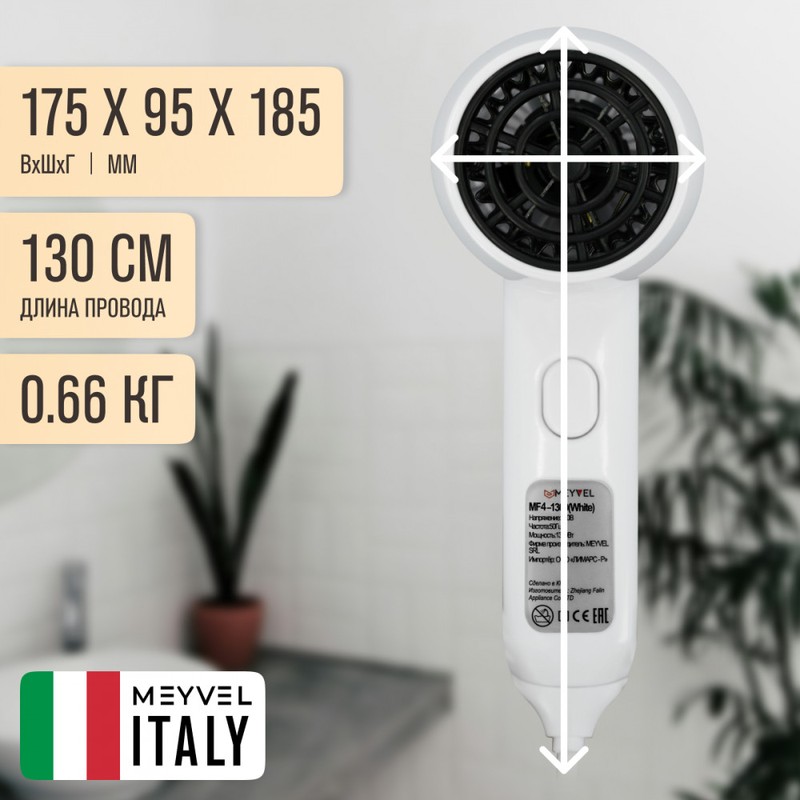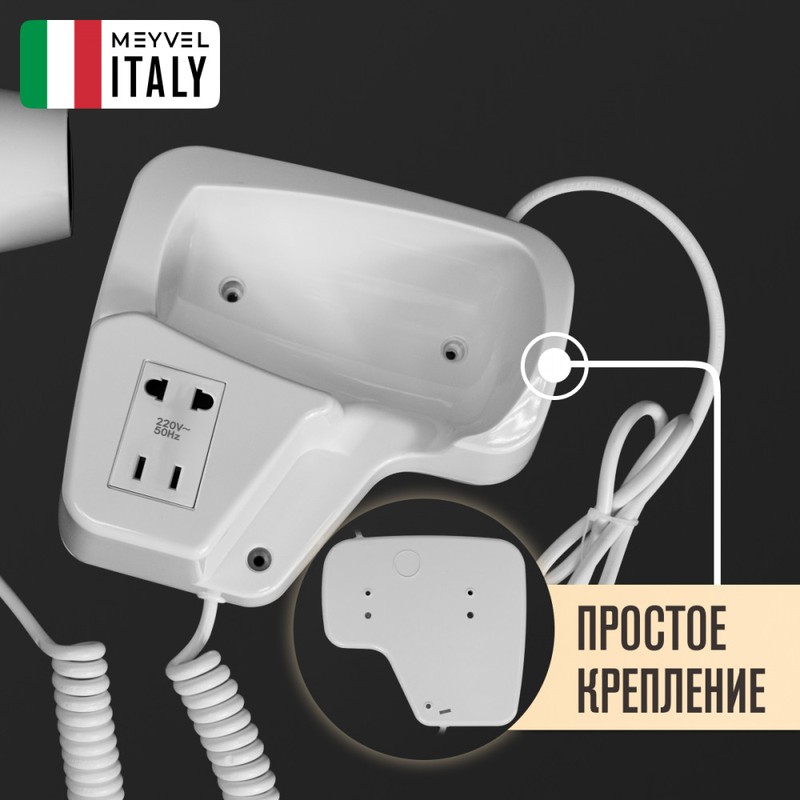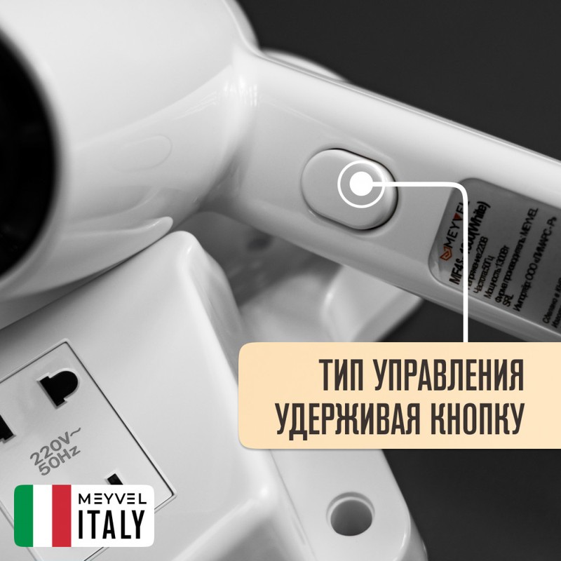 Настенный фен для волос Meyvel MF4S-1300 (White) обеспечит комфортную и быструю сушку волос. Фен имеет настенную установку, что делает его идеальным вариантом для использования в гостиничном бизнесе, фитнес-центрах, офисах, либо в салонах красоты. Так же он подойдёт для использования в частных домах или квартирах. Благодаря небольшим габаритам, подобрать подходящее место установки не составит сложностей. Лёгкий вес устройства гарантирует удобство во время использования. Корпус сделан из пластика высокого качества.