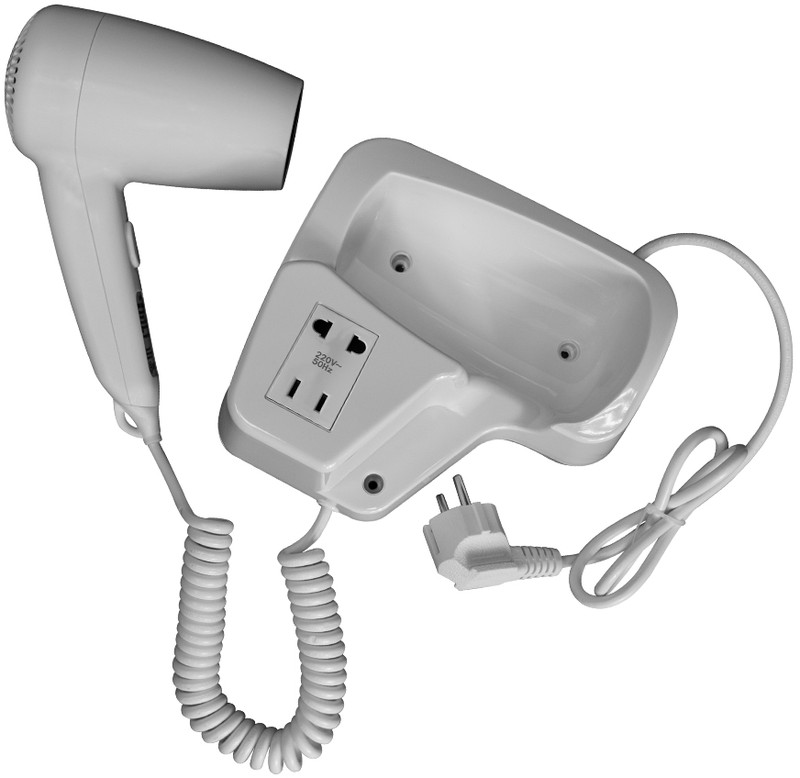 Данная модель имеет встроенную защиту от перегрева, для защиты двигателя от поломки, в случае продолжительного использования. Фен имеет мощность 1300 Вт, температуру нагрева воздуха 65°C и скорость выдуваемого воздуха до 20 м/с, совокупность этих характеристик обеспечивает быструю и качественную сушку волос. На корпусе основного блока имеется розетка, к которой можно подключить электробритву.