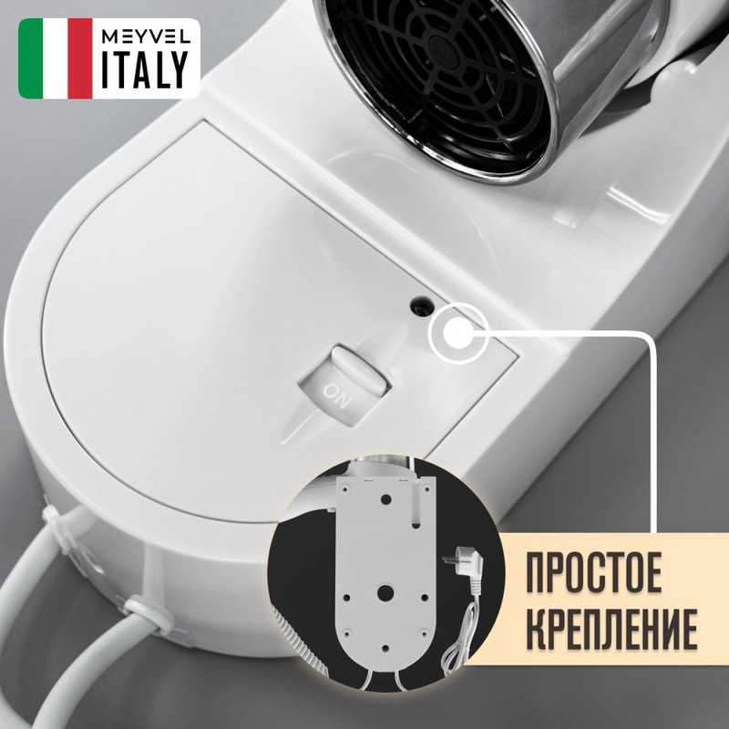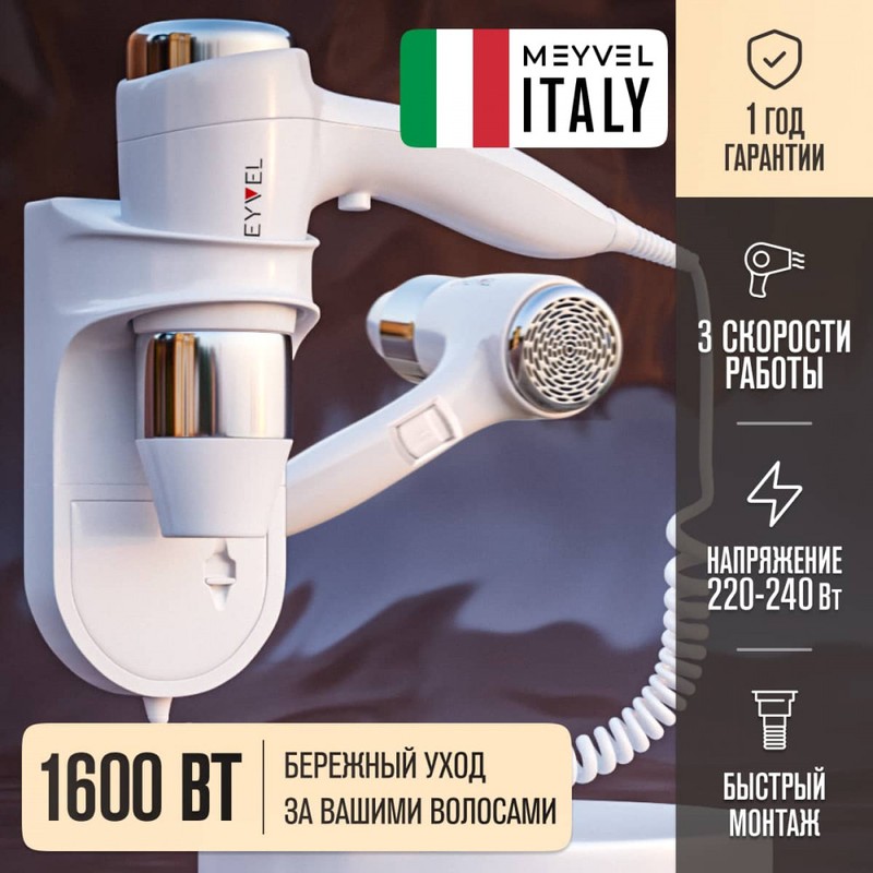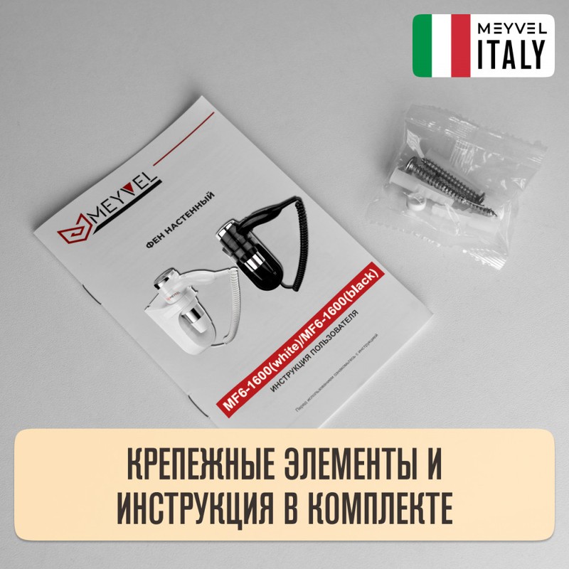 Настенный фен для волос Meyvel MF6-1600 (White) обеспечит комфортную и быструю сушку волос. Фен имеет настенную установку, что делает его идеальным вариантом для использования в гостиничном бизнесе, фитнес-центрах, офисах, либо в салонах красоты. Так же он подойдёт для использования в частных домах или квартирах. Благодаря небольшим габаритам, подобрать подходящее место установки не составит сложностей. Лёгкий вес устройства гарантирует удобство во время использования. Корпус сделан из пластика высокого качества.