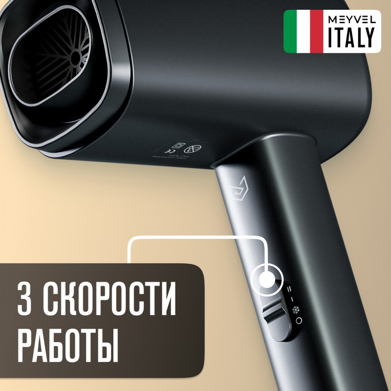 Микротермический датчик гарантирует безопасность, автоматически отключая фен Meyvel MF8-1600 (Black) при перегреве.