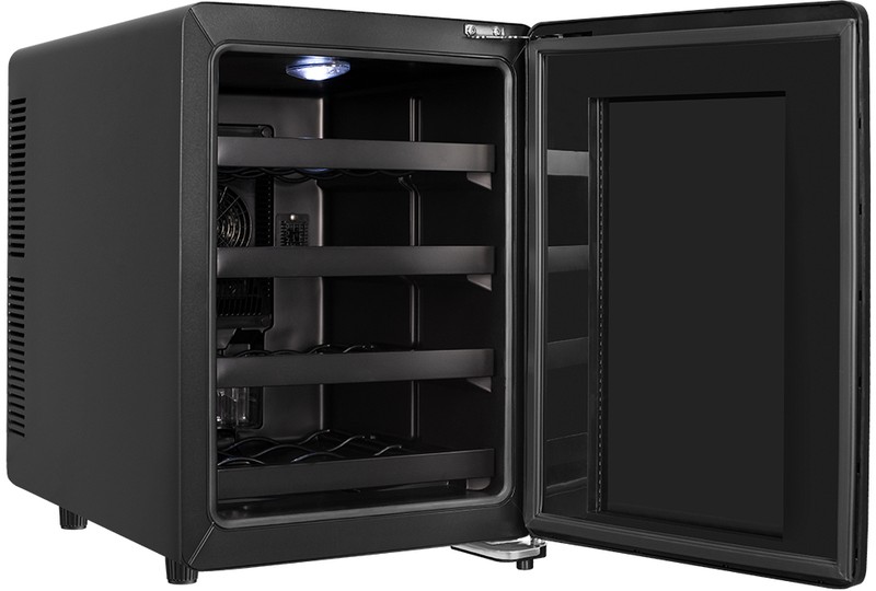 Термоэлектрический винный шкаф Meyvel MV12-BSF1 (easy) обладает небольшой вместимостью и способен разместить в себе до 12 бутылок.
