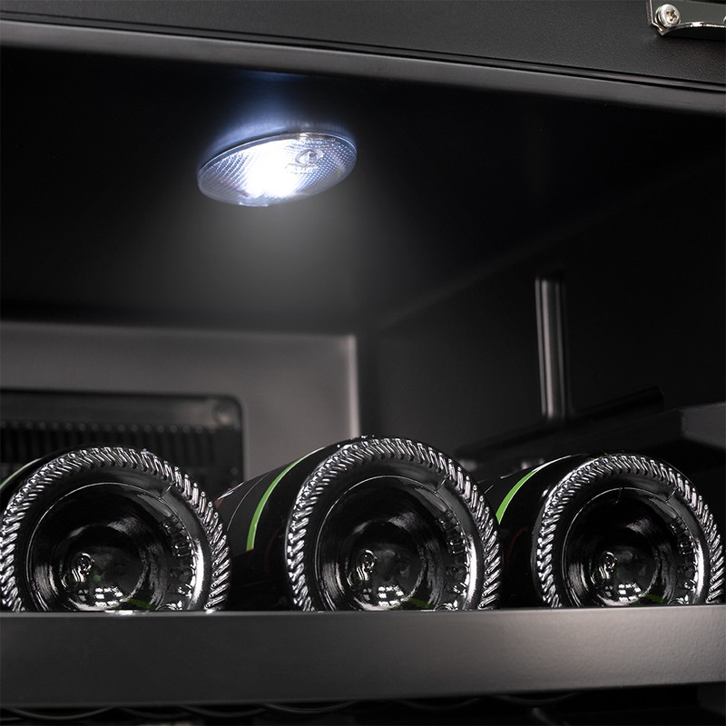 Современное сенсорное управление, исключает вероятность случайного нажатия. Дополнительно у данной модели шкафа предусмотрен демонстрационный режим, во время которого освещение не гаснет. Такая функция помогает демонстрировать винную коллекцию Вашим друзьям и близким.