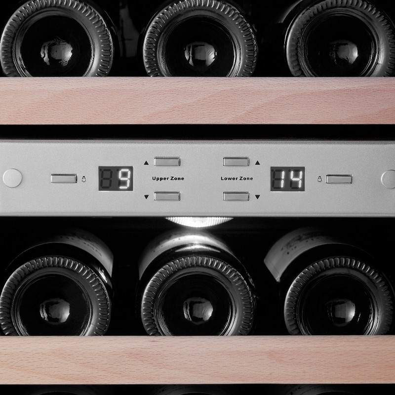 Равномерное охлаждение содержимого шкафа достигается благодаря качественной циркуляции воздуха в каждой зоне. С помощью электронной панели управления Вы сможете быстро и легко управлять всеми функциями шкафа. Важный приоритет - винный шкаф Meyvel MV12-SF2 (easy) работает практически бесшумно, его можно установить даже в спальной комнате.