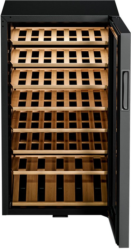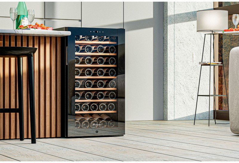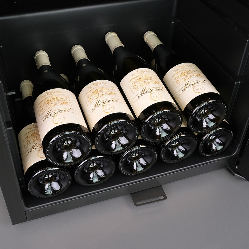 С эффективным типом прямого охлаждения и поддержкой температуры в диапазоне от +5 до +20°C, это устройство содержит вина в оптимальном состоянии. А с влажностью, контролируемой в пределах 60-80%, напитки долго не потеряют свои вкус и аромат. Двойное стекло с УФ-фильтром обеспечивает надежную защиту от пагубных солнечных лучей.