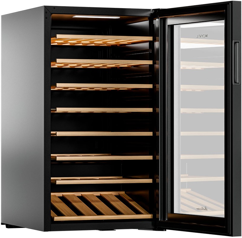 Винный шкаф Meyvel MV52-KBF1 – отличный выбор для ценителей вина, которые хотят организовать элегантную и практичную винотеку. Это сильное и вместе с тем функциональное устройство способно вместить до 52 бутылки типа «Бордо» 0,75 литра, обеспечивая их идеальное хранение. А без демонстрационной полки вместимость увеличивается до 56 бутылок.