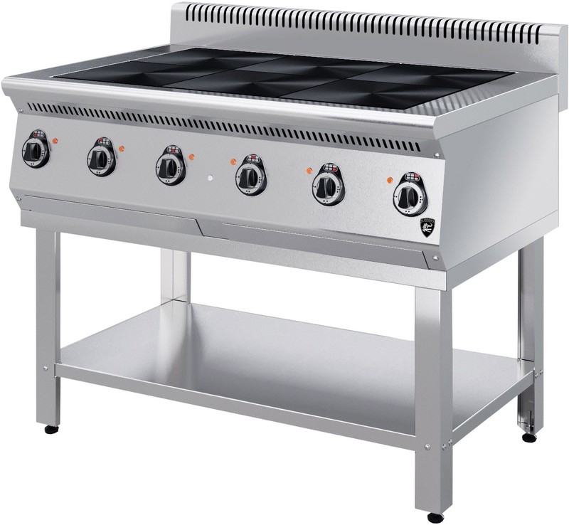 1110x700x850/940 полностью - нерж. сталь; на подставке- чугунные конфорки 300х300 мм;- все регуляторы расположены на передней панели;- мощность каждой конфорки 3кВт;- разогрев до 400 С за 25 мин;Масса, кг 123 кг.Вес в упаковке 175 кг.Количество конфорок 6Площадь жарочной поверхности, не более м2 0,54 м2Размеры в упаковке (ДхГхВ) 1200 x900x1150 мм Температура рабочей поверхности конфорок не более Со 400 Со, Поставляется в сборе.Кабель для подключения в комплект поставки не входит и приобретается дополнительно.