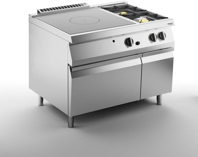 1200х730х900 мм, 171 кг, газ 15 кВт, 1 зона концентрического нагрева + 2 горелки справа, на закрытой подставке