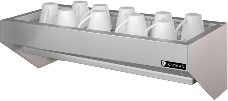 Габариты 600х300х225мм, каркас AISI 430 0,8мм, в каркас установлена кассета , изготовленная из н.с. AISI 304. Кассеты съемные. Состоит из полки, кассеты и сливного лотка. Кассета представляет собой решётку из прутка, в ячейки которой помещаются тарелки. Под полкой установлен сливной лоток для сбора жидкости. В лотке предусмотрен небольшой уклон, обеспечивающий сток жидкости, поступающей с мокрой посуды к сливному отверстию. Все края полки имеют подгиб для предотвращения травматизма персонала при пользовании полкой. В комплект поставки полки входят крепежная планка и метизы для закрепления полки на стене. Вес 5,7кг.