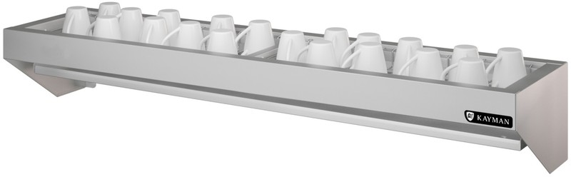 Габариты 1200х300х225мм, каркас AISI 430 0,8мм, в каркас установлена кассета , изготовленная из н.с. AISI 304. Кассеты съемные. Состоит из полки, кассеты и сливного лотка. Кассета представляет собой решётку из прутка, в ячейки которой помещаются тарелки. Под полкой установлен сливной лоток для сбора жидкости. В лотке предусмотрен небольшой уклон, обеспечивающий сток жидкости, поступающей с мокрой посуды к сливному отверстию. Все края полки имеют подгиб для предотвращения травматизма персонала при пользовании полкой. В комплект поставки полки входят крепежная планка и метизы для закрепления полки на стене. Вес 5,7кг.