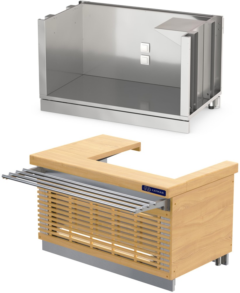 1370х792х81520мм, 220В, номинальная мощность подключаемого оборудования 2,2кВт, 1 розетка. Конструкция сборная, бескаркасная, из нержавеющей стали AISI430. Ножки модуля выполнены из нержавеющей стали, имеют пластиковую опорную часть и регулируют высоту модуля 20 мм. Со стороны обслуживающего персонала располагаются розетка 220 В для подключения кассового аппарата и выключатель для подсветки передней панели. Стол оснащен подиумом для установки кресла продавца-кассира. Подиум покрыт линолеумом, обеспечивающим легкость санитарной обработки. Стол может быть собран в правом или левом исполнении. В комплект поставки входят передний и задний плинтусы из нержавеющей стали. Варианты дополнительной комплектации: НАПРАВЛЯЮЩАЯ ДЛЯ ПОДНОСОВ KAYMAN GUSTO НП-1370-02; ПОДСВЕТКА ДЛЯ ТУМБ-ПОДСТАВОК KAYMAN GUSTO ПСВ-1370-02. Кассовый стол предназначен для оборудования рабочего места продавца-кассира.