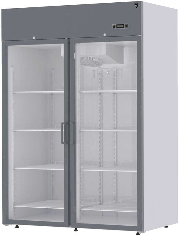 1400х860х2015мм,-5…+5С, 1400л, 2 двери стекло, крашеная сталь, R290, клапан шредера, верхнее расположение агрегата, 230В, 50 Гц, тип охлаждения динамический, оттайка автоматическая при помощи ТЭНов, с системой испарения конденсата. Терморегулятор эл. блок. ПЭН обогрева трубки слива конденсата. Кол-во полок 10, подсветка, замок. Суточный расход электроэнергии 9,5кВ/ч. Потребляемая мощность 0,85раб/0,418отт кВт. Стандарт Gastronorm GN 2/1. Вес 190кг. Толщина стенки корпуса 40мм.