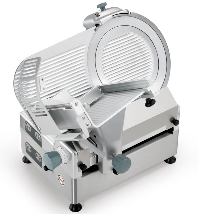 685х575х630, нож 300мм; 0,28+0,18кВт, 220В, толщина нарезки 23мм, ход каретки 310мм, лоток 365x270мм. С опцией Poseidon - спец. каретка для нарезки рыбы