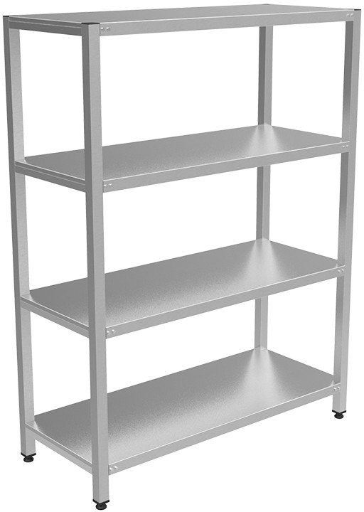 1000х300х1600 Стеллаж кухонный разборный (4 сплошные полки - нерж. сталь. aisi 430, каркас нерж. труба 40х40). полки регулируемые по высоте с шагом 100мм