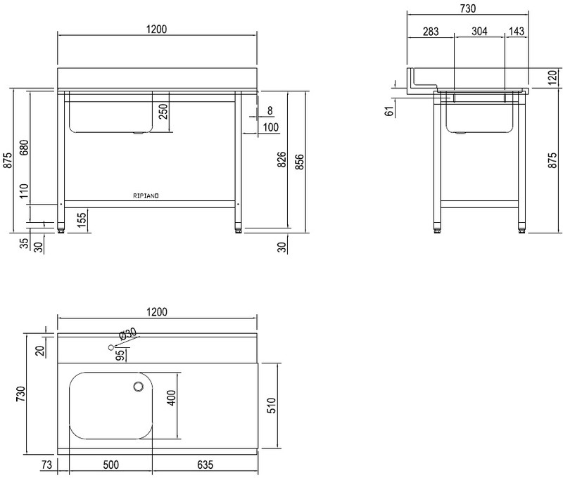 СТОЛ Д/ГРЯЗ.ПОСУДЫ DIHR T55 1200 SX СПЕЦ. ВАННА СЛЕВА 1