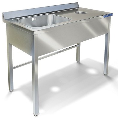 1200х700х850мм, Стол приставной к посудомоечной машине с бортом высотой 70мм и отверстием под отходы диаметром 180мм расположенным слева. Цельнотянутая емкостью 500х400х250 из нержавеющей стали марки AISI 304 толщиной 1мм. Столешница из нержавеющей стали марки AISI 304 толщиной 1,0мм. Каркас разборный из трубы 40х40 нержавеющей стали марки AISI 304 толщиной 1,2мм. Полка из нержавеющей стали марки AISI 304 толщиной 0,8мм. Крепление к посудомоечной машине слева. Регулируемые опоры. Стол поставляется в разобранном виде.