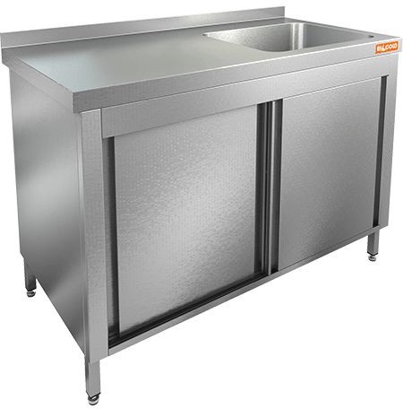 900х600х850мм, НСЗК1М-9/6БП стол с ванной моеч. 1 секц. (500х400х250) справа, закрыт.,двери-купе