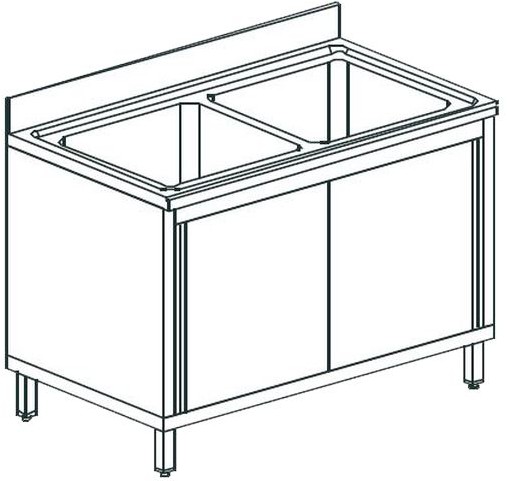 1000х600х900 мм, 2 ванны 400х400 мм, двери-купе, нерж сталь AISI 304