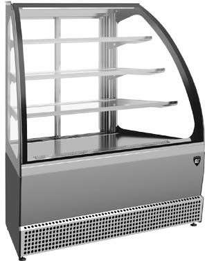 1200х685х1265 t режим 0…+7 C. Витрина холодильная,со встроенным агрегатом, гнутое стекло, 3 стеклянные полки, полезный объем —0,22 м3, охлаждаемая площадь поддонов для выкладки продуктов, 1,14 м2, динамическое охлаждение, раздвижные задние шторки, оттайка естественными теплопритоками, потр. эл.энергии в сутки —8,8 кВт, R290, цвет корпуса — черный